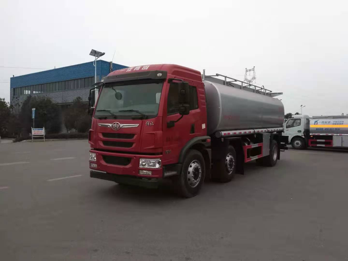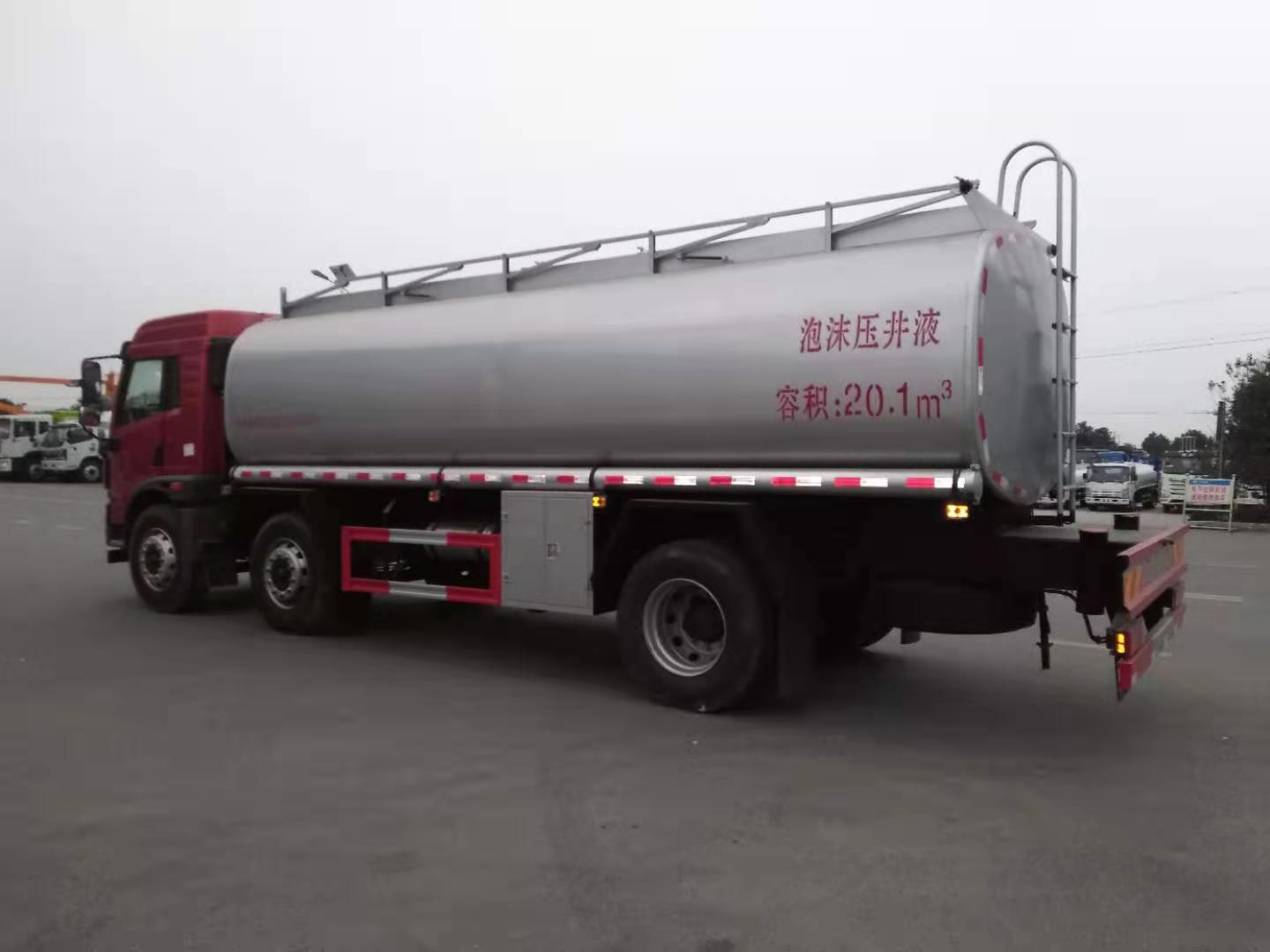 其它 | 該車為非危化品運輸車;罐體有效容積20.1立方米,罐體外形尺寸(長×寬×高)(mm):6600×2350×1650,7350×2200×1550.該車允許運輸介質(zhì)的最大密度:730千克/立方米,僅選裝底盤1900+4000,1900+4700軸距,僅選裝底盤CA6DLD-22E5發(fā)動機.油耗值33.5對應(yīng)發(fā)動機CA6DLD-22E5.側(cè)防護(hù)裝置材質(zhì)為Q235A,連接方式為焊接連接,后下部防護(hù)裝置材質(zhì)為Q235A,連接方式為焊接連接,后部防護(hù)離地高度460mm,斷面尺寸為120×50mm.ABS防抱死制動系統(tǒng)生產(chǎn)廠家/型號:浙江萬安科技股份有限公司/VIE ABS-II.此車排氣管前置,帶前盤制動,帶限速裝置,限速80km/h.選裝不同結(jié)構(gòu)的翼子板.選裝改前臉的駕駛室.整車長/軸距/前懸/后懸/罐體尺寸(長×長軸×短軸)對應(yīng)關(guān)系分別為(mm):1.9650/1900+4000/1332/2418/6600×2350×1650;2.9650/1900+4000/1375/2375/6600×2350×1650;3.10350/1900+4700/1332/2418/7350×2200×1550;4.10350/1900+4700/1375/2375/7350×2200×1550.選裝新前臉的平頂駕駛室. |